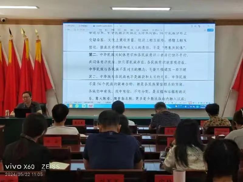 5月22日,內(nèi)蒙古自治區(qū)黨委黨史和地方志研究室主任杜軼鑫以“自覺鑄牢中華民族共同體意識”為題,從鑄牢中華民族共同體意識的背景、關(guān)于以鑄牢中華民族共同體意識為主線和關(guān)于前車之鑒等三個方面,為全體黨員干部講授了專題黨課。從“共同體”概念、“民族”由來到黨的民族工作發(fā)展過程,進一步強調(diào)了鑄牢中華民族共同體意識的重大意義和科學(xué)內(nèi)涵。