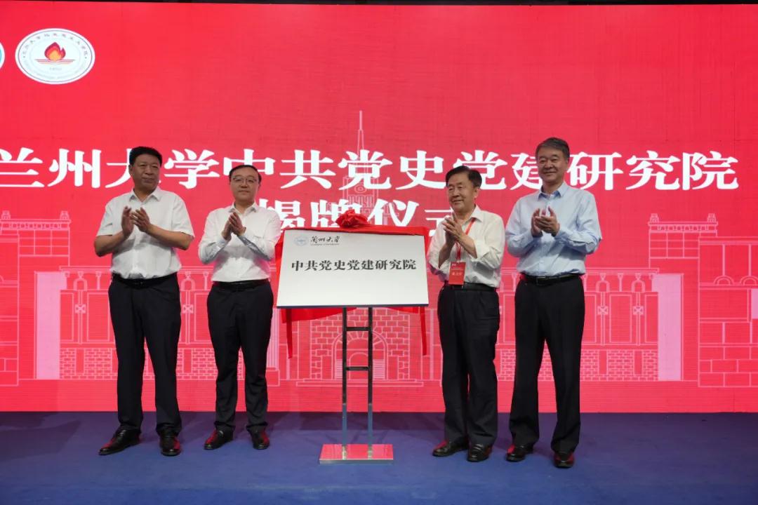 李鵬杰宣讀成立蘭州大學中共黨史黨建研究院文件。馬小潔、甘博源、王庭大、蘭金補共同為蘭州大學中共黨史黨建研究院揭牌。