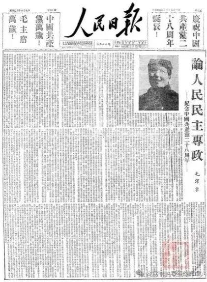 《人民日報》發表《論人民民主專政——紀念中國共產黨二十八周年》