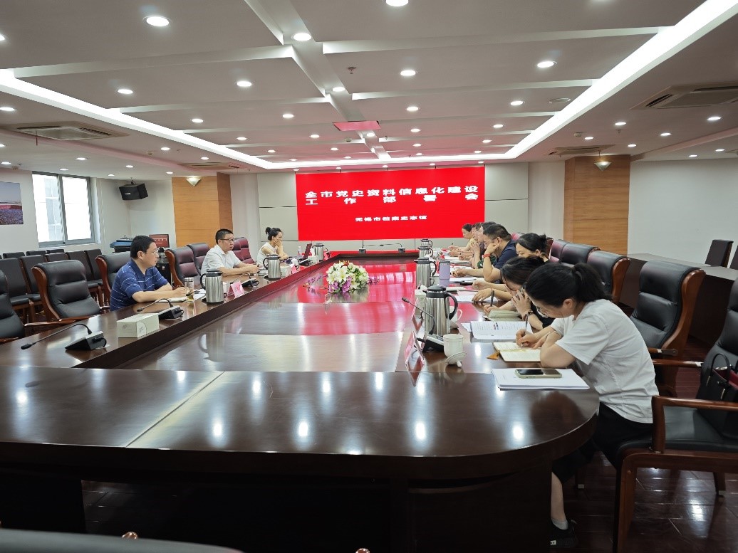 為貫徹落實江蘇省委黨史工作辦公室關于加強黨史資料信息化建設的部署要求,7月4日,江蘇省無錫市檔案史志館召開全市黨史資料信息化建設工作部署會。無錫市檔案史志館分管負責同志、黨史工作部全體人員和各市(縣)區檔案史志館相關科室負責人參加會議。