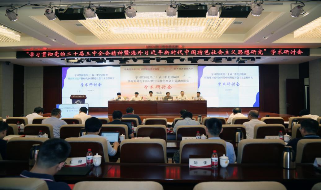 7月31日,由中央黨史和文獻(xiàn)研究院信息資料館、對外經(jīng)濟(jì)貿(mào)易大學(xué)聯(lián)合主辦,北京高校中國特色社會主義理論研究協(xié)同創(chuàng)新中心(對外經(jīng)濟(jì)貿(mào)易大學(xué))、《國外理論動態(tài)》雜志編輯部聯(lián)合承辦的“學(xué)習(xí)貫徹黨的二十屆三中全會精神暨海外習(xí)近平新時代中國特色社會主義思想研究”學(xué)術(shù)研討會在北京舉行。中央黨史和文獻(xiàn)研究院副院長、中央編譯局局長季正聚,對外經(jīng)濟(jì)貿(mào)易大學(xué)黨委書記黃寶印出席開幕式并致辭。中央對外聯(lián)絡(luò)部原副部長于洪君應(yīng)邀出席。中央黨史和文獻(xiàn)研究院信息資料館館長許先春等參加會議。會議開幕式由對外經(jīng)濟(jì)貿(mào)易大學(xué)黨委副書記、副校長文君主持。
