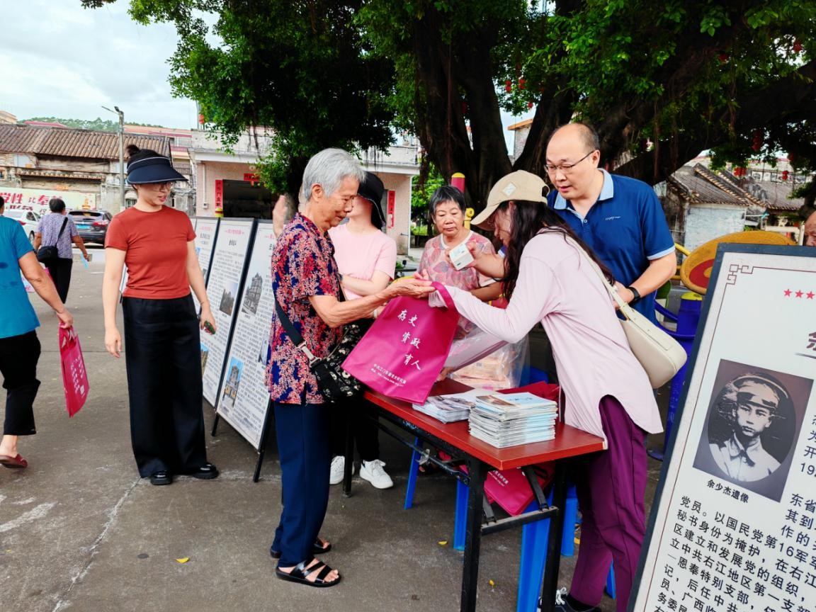 7月18日,研究室聯合鶴山黨史部門到雅瑤鎮黃洞村開展地方黨史宣講。活動現場,研究室業務骨干向駐足參觀流動展覽的村民熱情介紹江門黨史故事,講解江門五邑地區的紅色革命遺址和地方黨史人物,現場派發江門黨史宣傳資料200多份。
