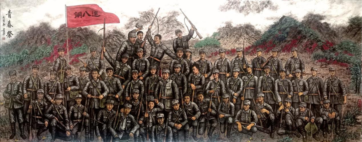 2022年,居住在龍口市的齊白石再傳弟子、吉林省工藝美術大師崔寧了解到豐儀店村父老鄉親的心愿后,志愿承擔起為53位無名英雄創作集體畫像的任務。這些烈士生前沒有照片,不知姓名,也不知他們親屬的相貌,更沒有其他素材,對崔寧來說是個難題。為此,她多次走進烈士陵園,用心靈與烈士對話,仿佛看到了他們英氣勃發的面容,聽到了他們并未遠去的腳步聲。崔寧說:“我懷著崇敬的心情,用一年的時間,在靈魂的滌蕩洗禮中,捕捉他們的鮮活與靈動,反復修改、幾易其稿,終于創作完成了《青春祭》,用畫面留住了烈士們燦爛的笑容!薄肚啻杭馈凡捎昧思o念碑式的構圖,突顯戰士的英雄形象,同時也隱喻他們的英雄事跡像豐碑一樣屹立于人們心中。每個人物突出青春年華,同時注意區別他們的個性特征,整幅作品以山水畫的方法來表現人物畫的創作,更突顯了戰士的堅毅勇敢和鐵骨錚錚的革命氣概。村民們說:“有了這張53位抗日無名先烈的集體繪畫,后人們就可以記住他們的容顏了。多少年的念想,終于成為現實。我們要讓更多的人知道這段歷史,記住這些抗日無名英雄的模樣,只要我們記得,他們就永遠活著!