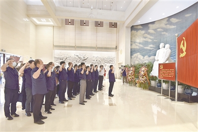 天津市機關、企事業單位組織黨員干部到周恩來鄧穎超紀念館參觀,向周恩來、鄧穎超漢白玉雕像敬獻花籃。圖為近日,某單位組織黨員干部在周恩來鄧穎超紀念館瞻仰廳重溫入黨誓詞。