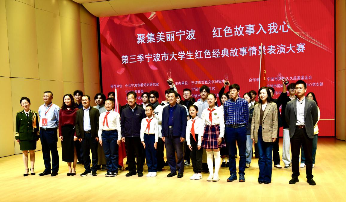 11月9日,由寧波市委黨史研究室、市教育局、團市委、市關工委、市新四軍歷史研究會指導,市紅色文化研究中心、市青少年宮主辦的寧波市大學生紅色經典故事情景表演大賽在市青少年宮音樂廳落下帷幕。
