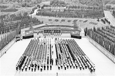 圖為江西省興國縣黨員干部在烈士陵園廣場舉行祭奠活動。 張春風 攝
