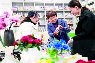 在重慶市北碚區水土街道萬壽社區青年夜校,老師指導青年職工學習制作絲網花,幫助青年職工豐富文化生活。新華社發