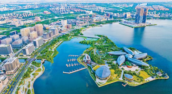 建設(shè)自由貿(mào)易試驗(yàn)區(qū)是以習(xí)近平同志為核心的黨中央在新時(shí)代推進(jìn)改革開(kāi)放的重要戰(zhàn)略舉措,在我國(guó)改革開(kāi)放進(jìn)程中具有里程碑意義。圖為2024年7月8日,中國(guó)(上海)自由貿(mào)易試驗(yàn)區(qū)臨港新片區(qū)滴水湖畔,鱗次櫛比的樓宇拔地而起,面貌日新月異。 人民圖片 計(jì)海新/攝