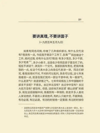 《要講真理,不要講面子》是陳云同志在中國共產黨第七次全國代表大會上發言的一部分,后收入《陳云文選》第一卷。