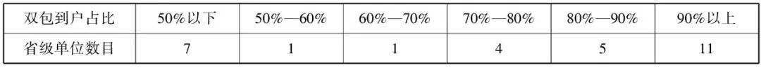 表4 各省、直轄市、自治區雙包到戶比例分段統計表