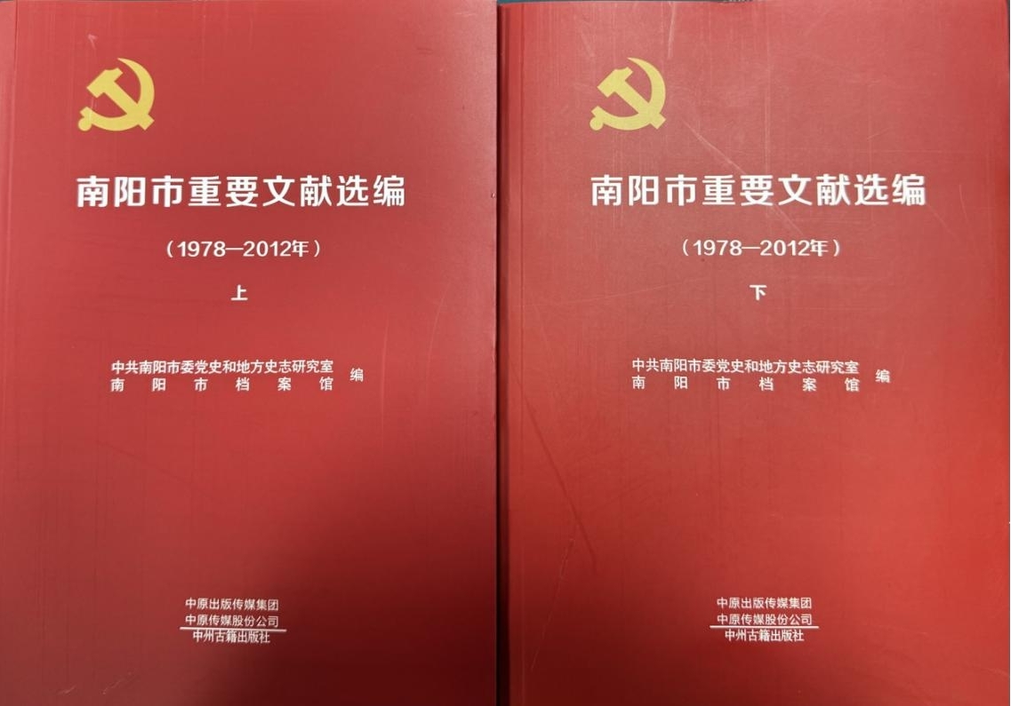 日前,河南省南陽市委黨史和地方史志研究室與南陽市檔案館聯合編輯的《南陽市重要文獻選編》(1978—2012年)一書,由中州古籍出版社出版發行。