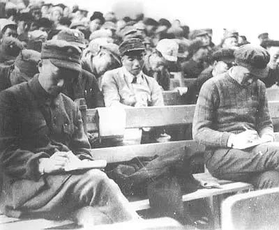 聶榮臻(前排左一)、羅瑞卿(前排右一)在中共七大會場上作記錄