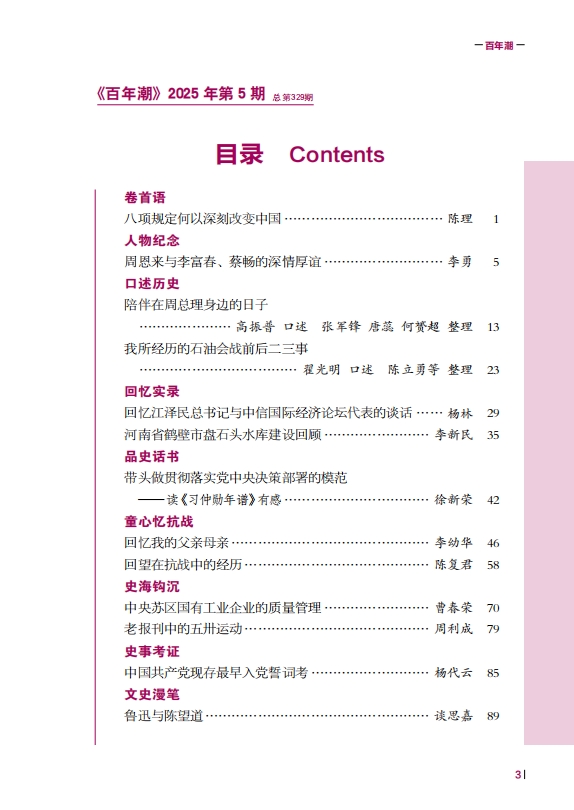 《百年潮》2025年第5期目錄