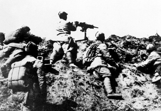 1940年8月至翌年1月,八路軍對日軍發(fā)動了百團大戰(zhàn)。這是全民族抗戰(zhàn)以來八路軍在華北發(fā)動的規(guī)模最大、持續(xù)時間最長的一次帶戰(zhàn)略性進攻的戰(zhàn)役。圖為戰(zhàn)役的第一階段在山西獅垴山血戰(zhàn)中的八路軍機槍陣地。 新華社發(fā)