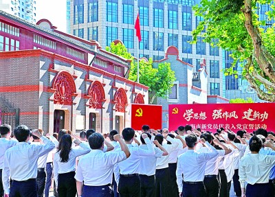 7月1日,上海市新黨員代表入黨宣誓活動(dòng)在中共一大會(huì)址前舉行。新華社發(fā)