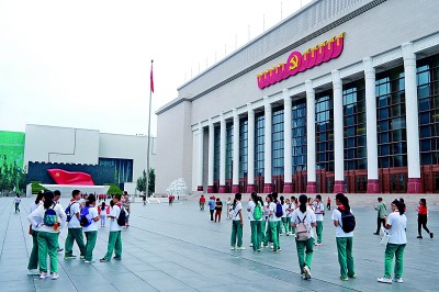 中國共產(chǎn)黨歷史展覽館廣場前,觀眾準(zhǔn)備入館參觀。本報(bào)記者 郭俊鋒攝/光明圖片