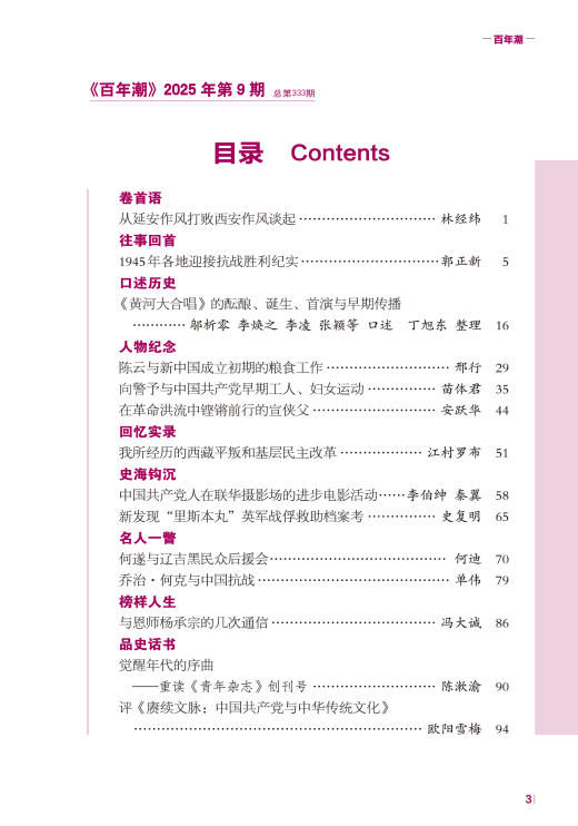《百年潮》2025年第9期目錄