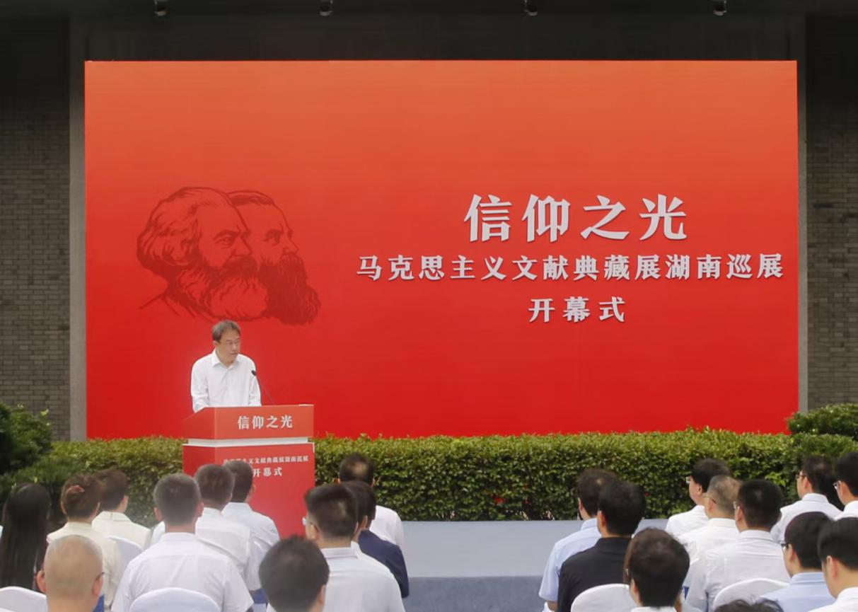 為深入學習貫徹習近平總書記對新時代馬克思主義理論研究和建設工程作出的重要指示精神,貫徹落實馬克思主義理論研究和建設工程工作會議部署,宣傳展示新時代馬克思主義文獻典藏工程成果,堅持不懈用習近平新時代中國特色社會主義思想凝心鑄魂,在中央馬克思主義理論研究和建設工程實施20周年、馬克思主義文獻典藏工程實施10周年之際,中央黨史和文獻研究院舉辦“信仰之光——馬克思主義文獻典藏展”。曲青山院長對辦展工作多次作出重要批示,提出明確要求,強調“一定要努力辦好,發揮作用,擴大影響”。2025年2月10日,展覽在北大紅樓開幕,曲青山院長及中央和國家機關有關部門領導出席活動并致辭。
