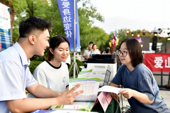 2025年8月25日,在山東省濱州市惠民縣孫武廣場(chǎng),人社局的工作人員向市民介紹社保證明查詢相關(guān)服務(wù)。新華社記者 郭緒雷 攝