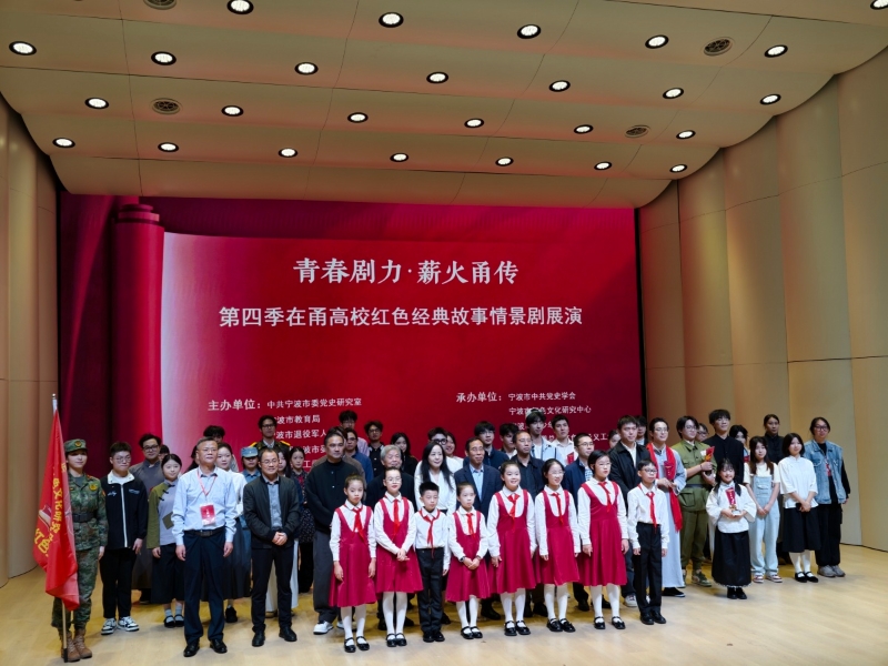 11月9日,由寧波市委黨史研究室聯合多部門舉辦的“青春劇力?薪火甬傳”第四季寧波市大學生紅色經典故事情景劇展演在青少年宮新城活動中心圓滿落幕。14支在甬高校代表隊同臺競技,用沉浸式演繹回溯紅色歷史,讓革命精神在青春舞臺上熠熠生輝。