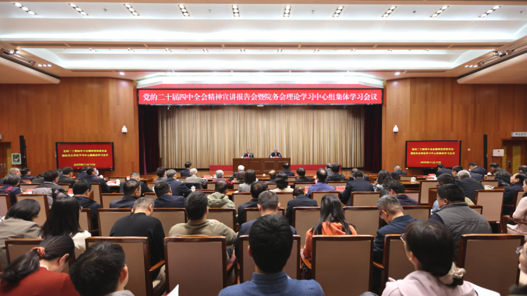 11月12日,中央黨史和文獻研究院召開黨的二十屆四中全會精神宣講報告會暨院務會理論學習中心組集體學習會議,邀請中央宣講團成員、中央政策研究室副主任田培炎作宣講報告。院長曲青山和院務會成員、退出現職的院領導出席會議,副院長孫東升主持會議。