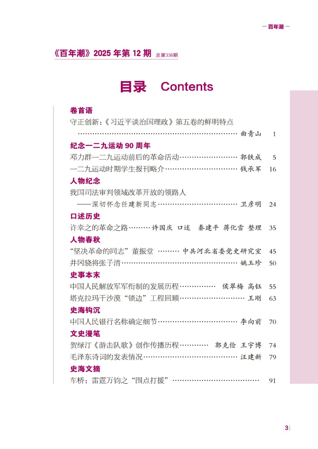 《百年潮》2025年第12期目錄