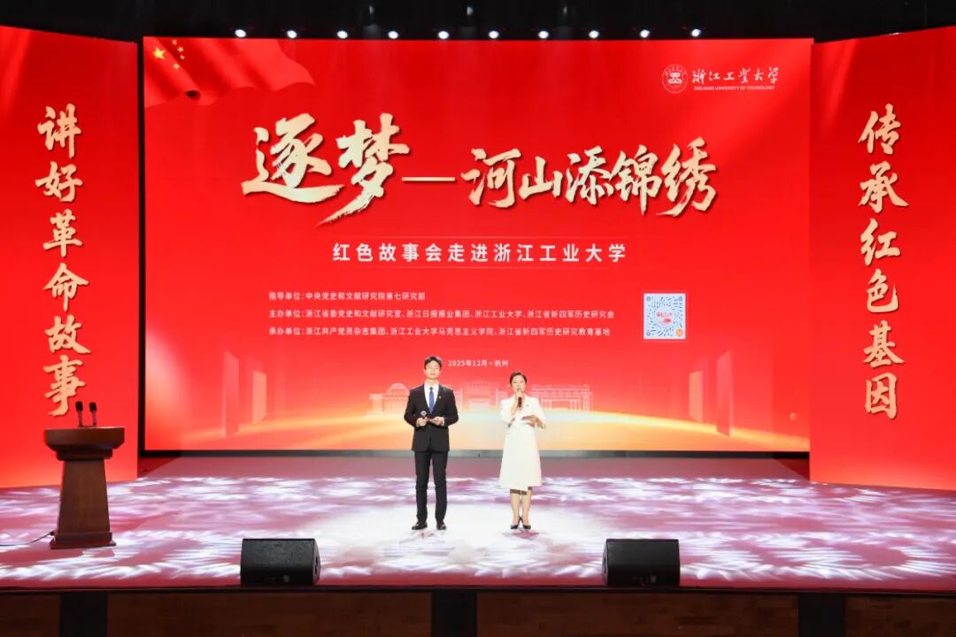12月23日,由中央黨史和文獻研究院第七研究部指導,浙江省委黨史和文獻研究室、浙江日報報業集團、浙江工業大學、浙江省新四軍歷史研究會主辦的“逐夢——河山添錦繡”紅色故事會在浙江工業大學拉開帷幕。上百名表演者以豐富多樣的藝術形式,為觀眾呈現了一場沉浸式紅色文化盛宴。