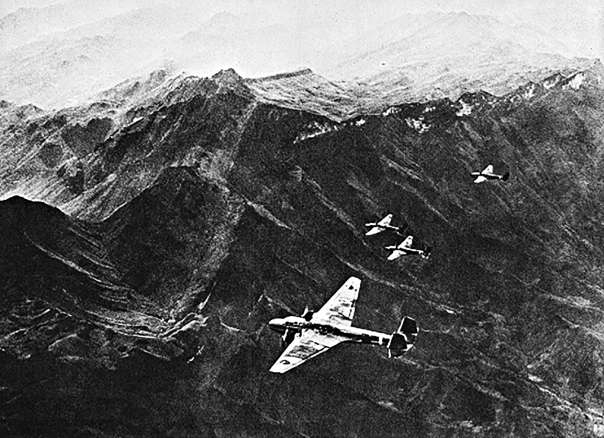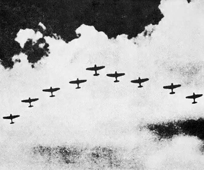 1939年9月28日,空襲重慶的日軍航空兵戰機編隊。